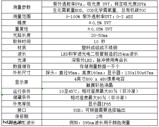 簡(jiǎn)要(yào)描述 :UV254 Dip Probe配(pèi)備全(chéng)彩色便(biàn)攜式IP65顯示屏 ,可(kě)檢測天然有機物(NOM)。該探頭浸沒在水中 ,無(wú)需昂貴試劑 。檢測TOC ,BOD和(hé)COD ;通過(guò)測量UVA,UVT和(hé)SUVA *,進(jìn)而檢測芳香族有機物,從而對三鹵甲烷(THM)等消毒副產品採取應對措施(shī)。