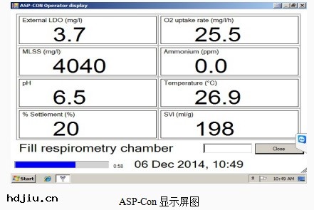 ASP-Con(activated sludge plant controller)儀表(biǎo)是(shì)一(yī)台應用在污水(shuǐ)廠(chǎng)處理過程(chéng)中可以自動清洗、自動校准和自動測量(liàng)多參數的監測系(xì)統。這些數據包括(kuò)活性污泥活性指標——呼吸速率曲線(sī) ;可提供(gōng)連續監測數據 ,如溶解氧(yǎng) 、pH、MLSS 、SVI 、鉀和氨氮等等 。